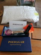 1.Poedagar watch 2.Original box 3.Steel strap adjuster tool 4.Watch wipe 5.Warranty card